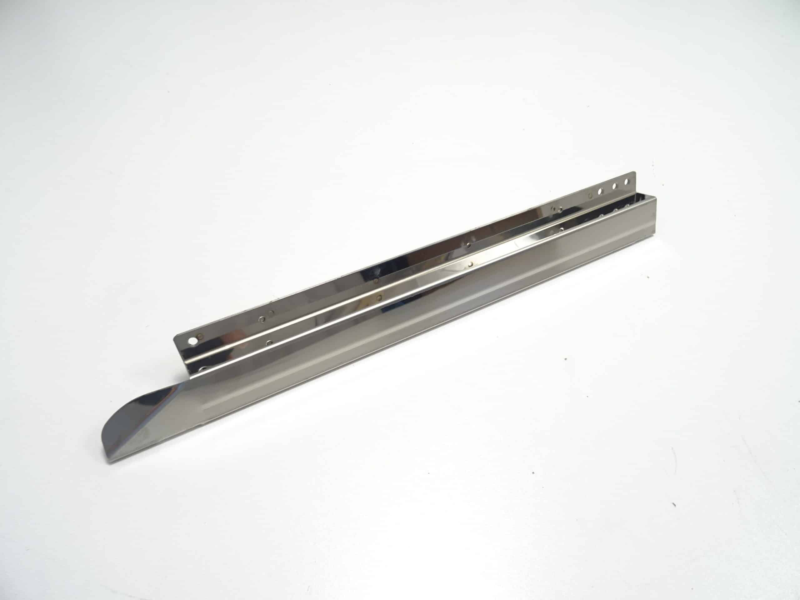 Chrome cover on the left side of the convertible top frame