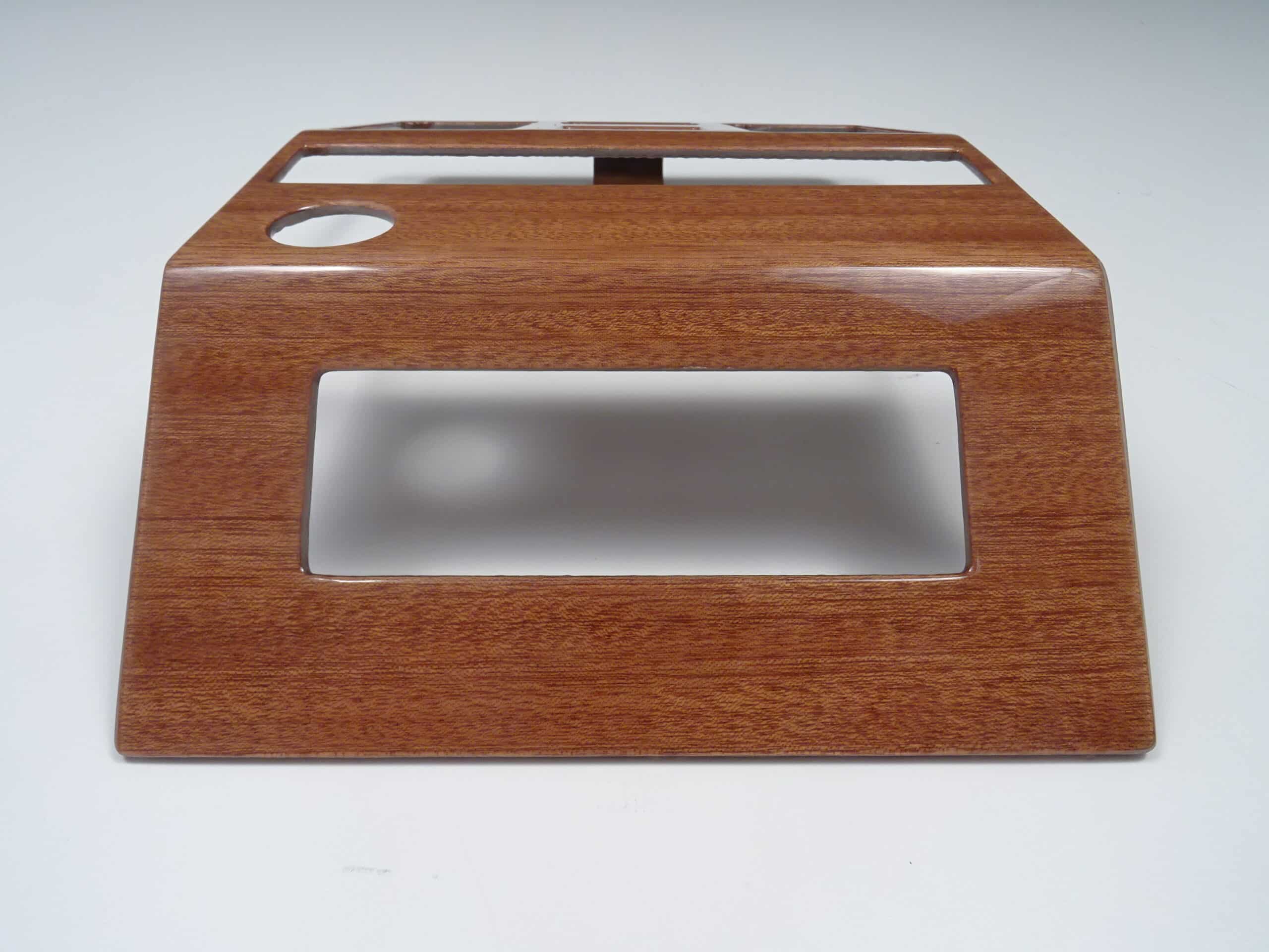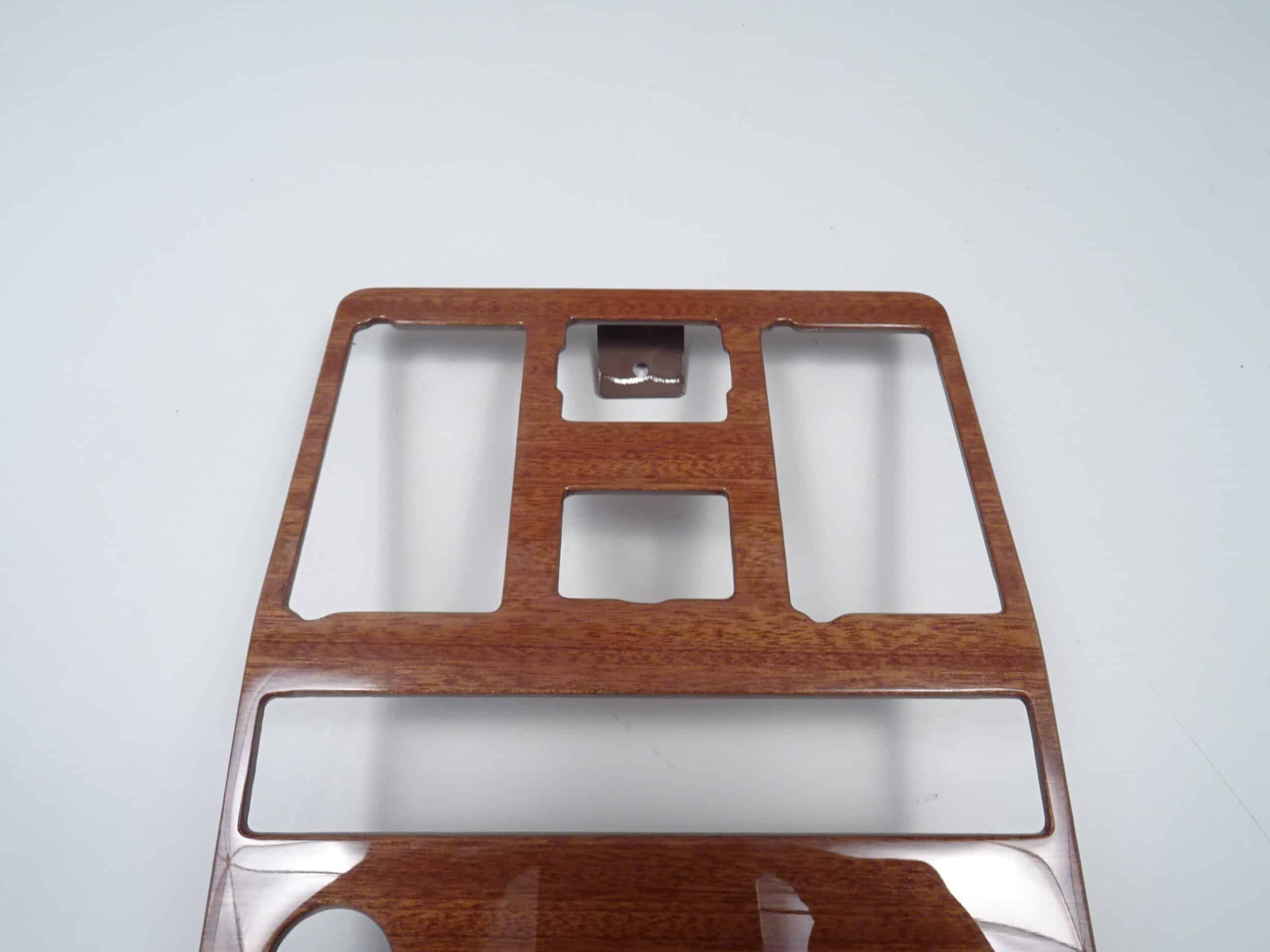 Add timeless elegance to your Fiat 124 Spider 1983-1985 with our exclusive mahogany wood paneling for the radio console. Manufactured in a renowned Italian factory, this cover is a masterpiece made of the finest mahogany. Produced exclusively for Spiderpoint, it features a precise fit and includes a rectangular opening for the digital watch. This high-quality cover for the switch group and fan nozzle combines exquisite design with functionality. Make a statement in the interior of your Spider by combining luxury and style. Discover the perfection of handcrafted Italian craftsmanship.