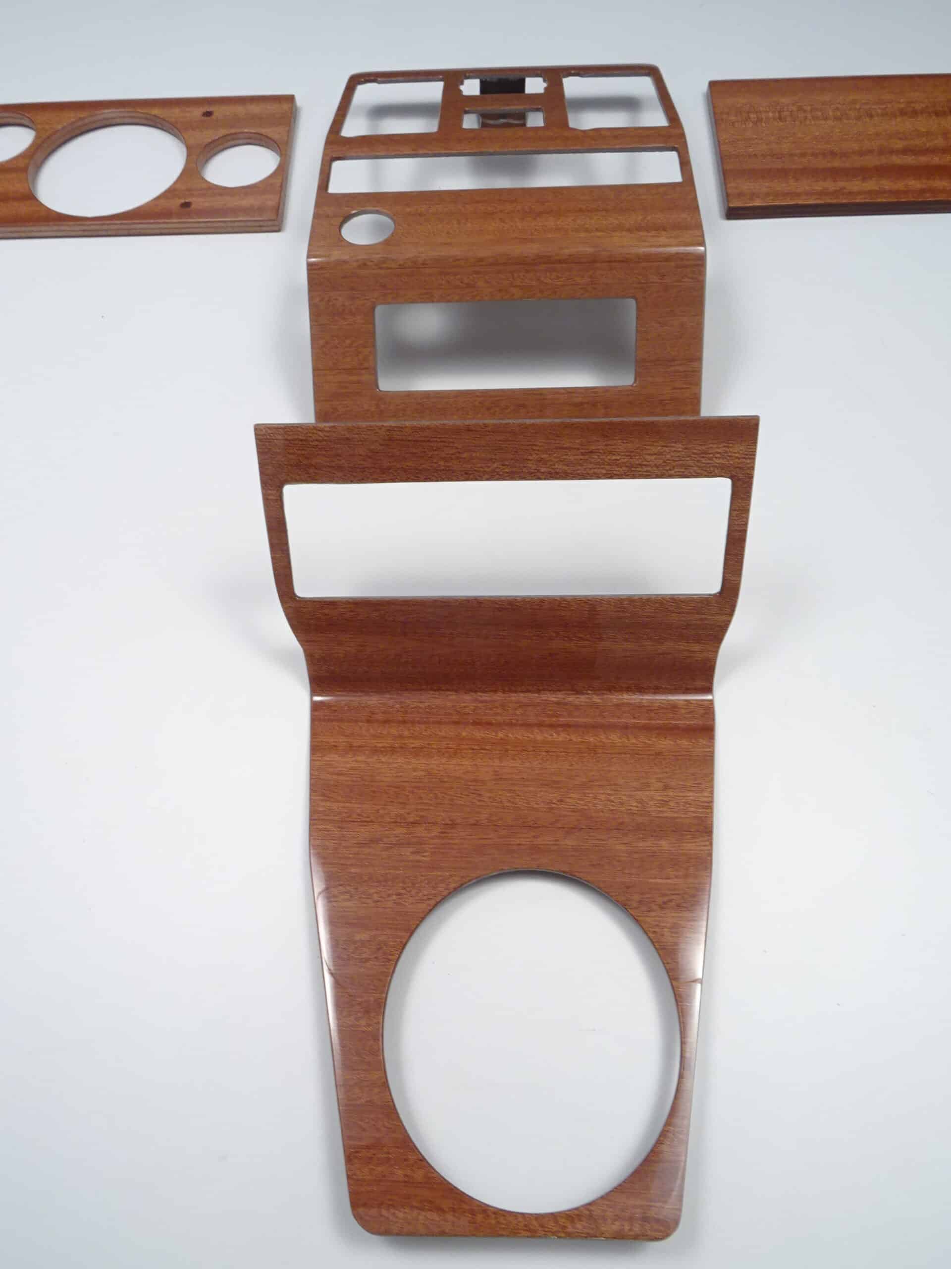 Refine the interior of your Fiat 124 Spider 1983-1984 with our exclusive 4-piece wood trim set. Every detail is handcrafted from the finest mahogany in a renowned Italian factory, made exclusively for Spiderpoint. The kit includes an instrument panel, glove compartment lid, digital clock radio console panel and manual shift center console panel. These high-quality wood panels give your Spider a timeless luxury upgrade. With a precise fit and easy installation, they become a distinctive eye-catcher in the interior of your vehicle. Discover the synthesis of Italian craftsmanship and exquisite design – a unique, hand-crafted finishing kit that transforms your Fiat 124 Spider into an individual masterpiece.